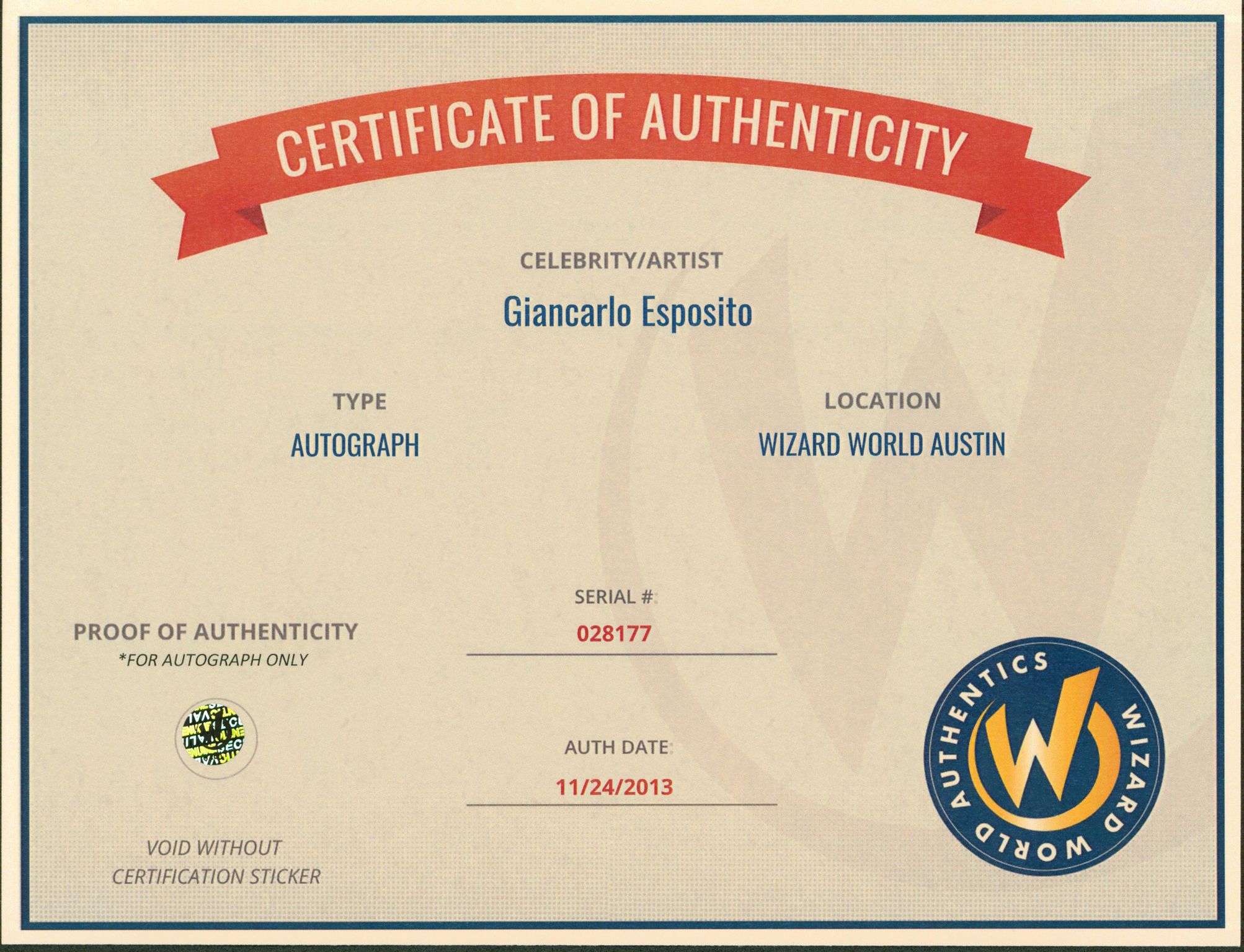 Authentication: Wizard World COA