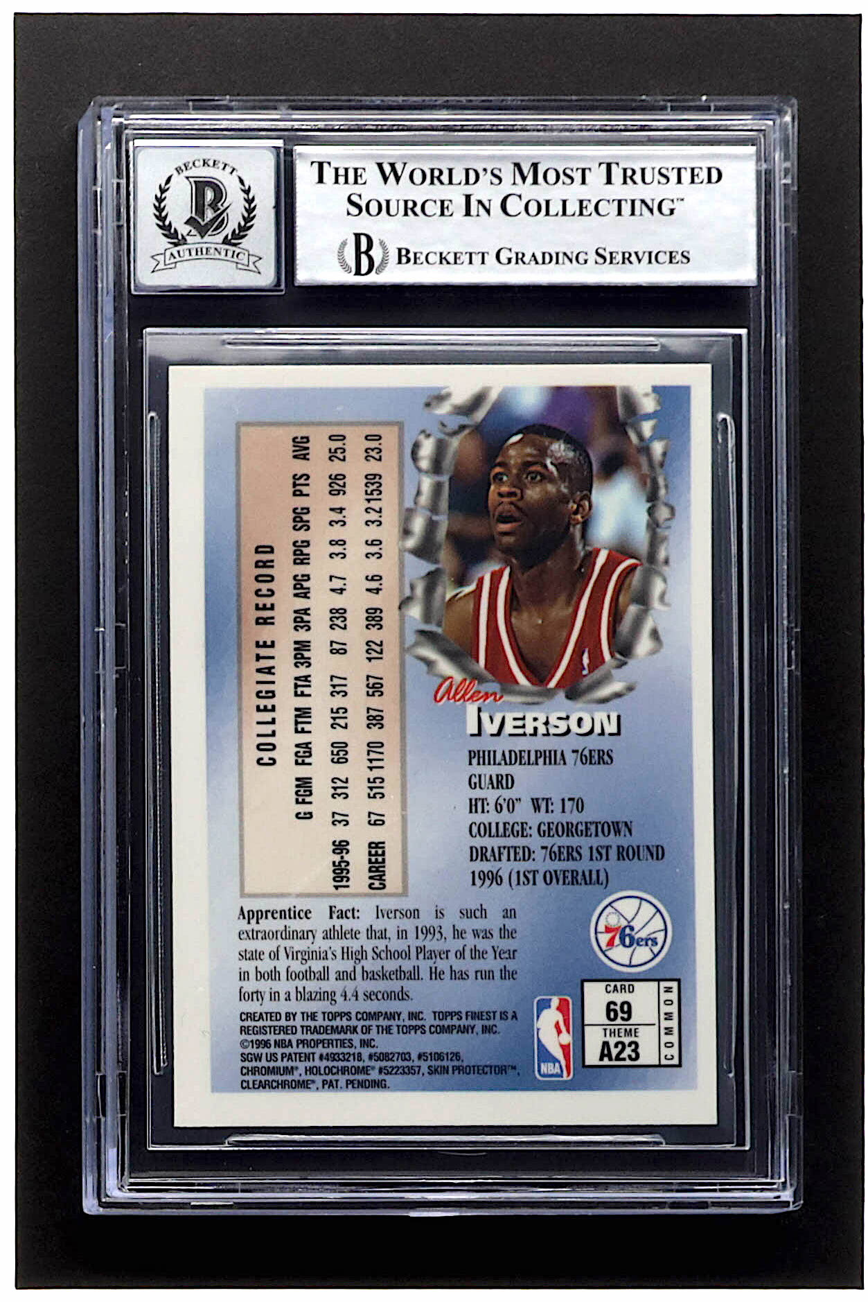 Allen Iverson Signed 1996-97 Finest #69 B RC (BGS | Auto 10)