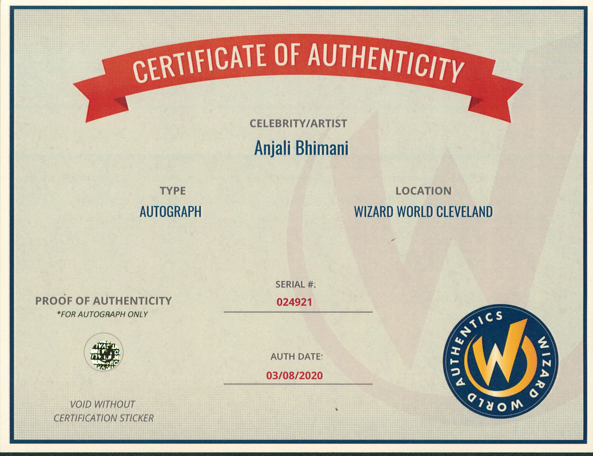 Photo measures 8" x 10" in size and has been hand-signed by Anjali Bhimani.