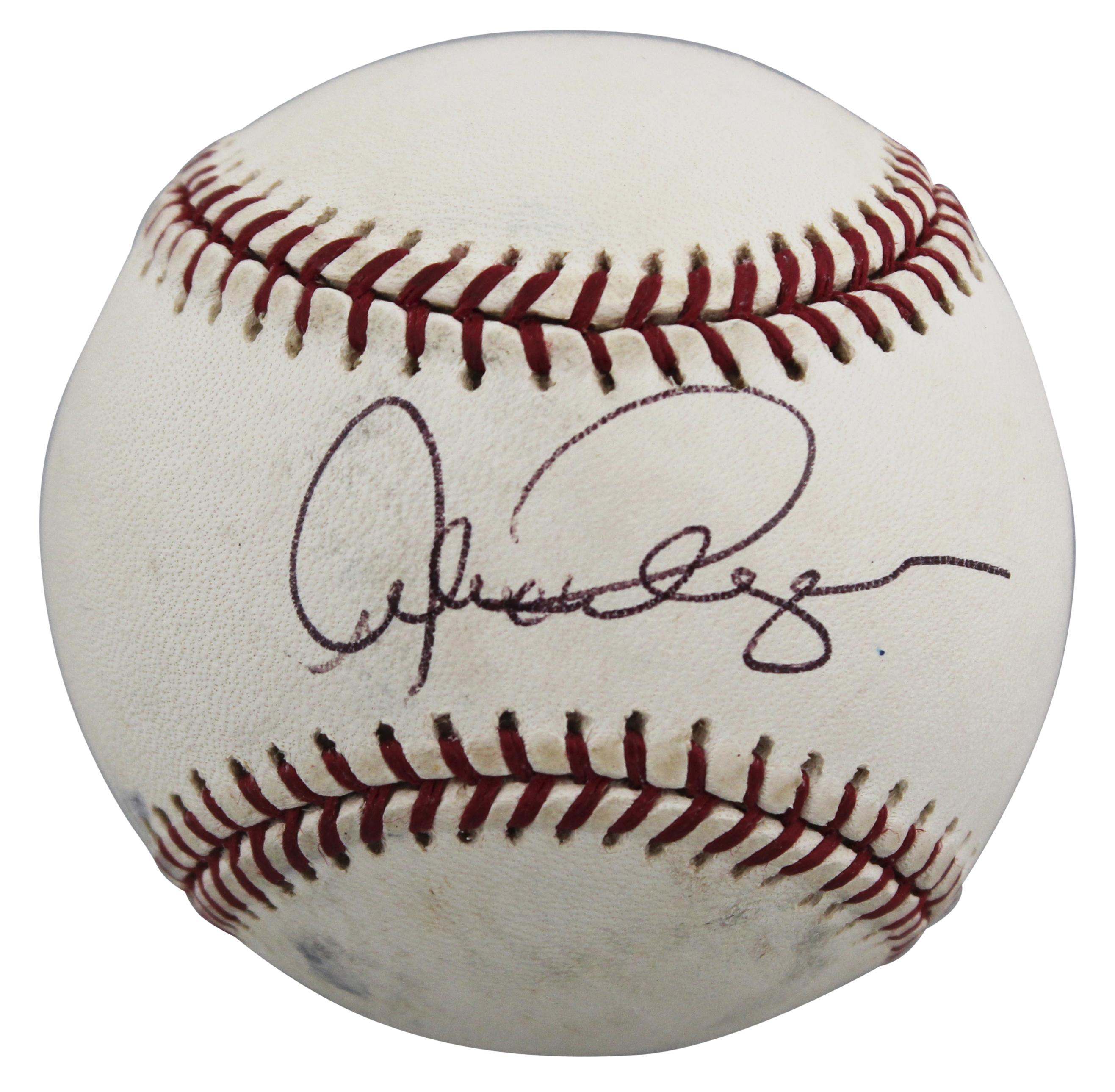 Rawlings Official Major League baseball has been hand-signed by Alex Rodriguez (New York Yankees). Please note, the ball is naturally toned and stained throughout.