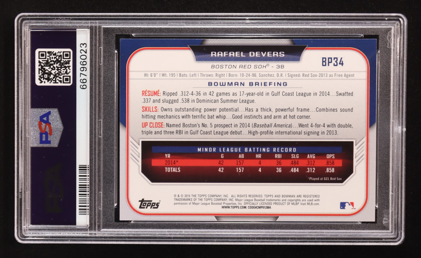 Rafael Devers 2015 Bowman Prospects #BP34 RC (PSA 10)