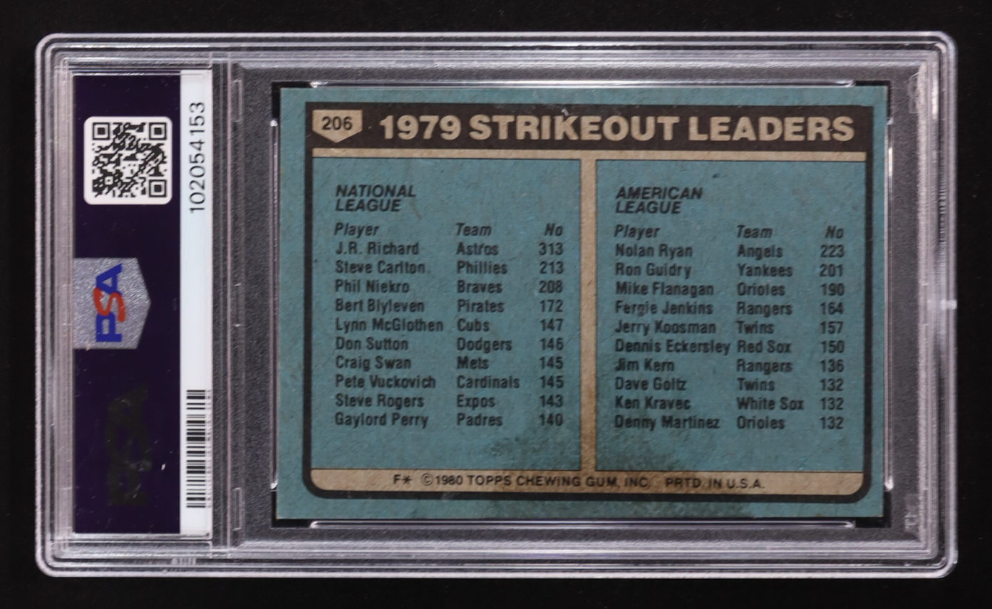 J.R. Richard / Nolan Ryan 1980 Topps N.L. Strikeout Leaders #206 (PSA 8)