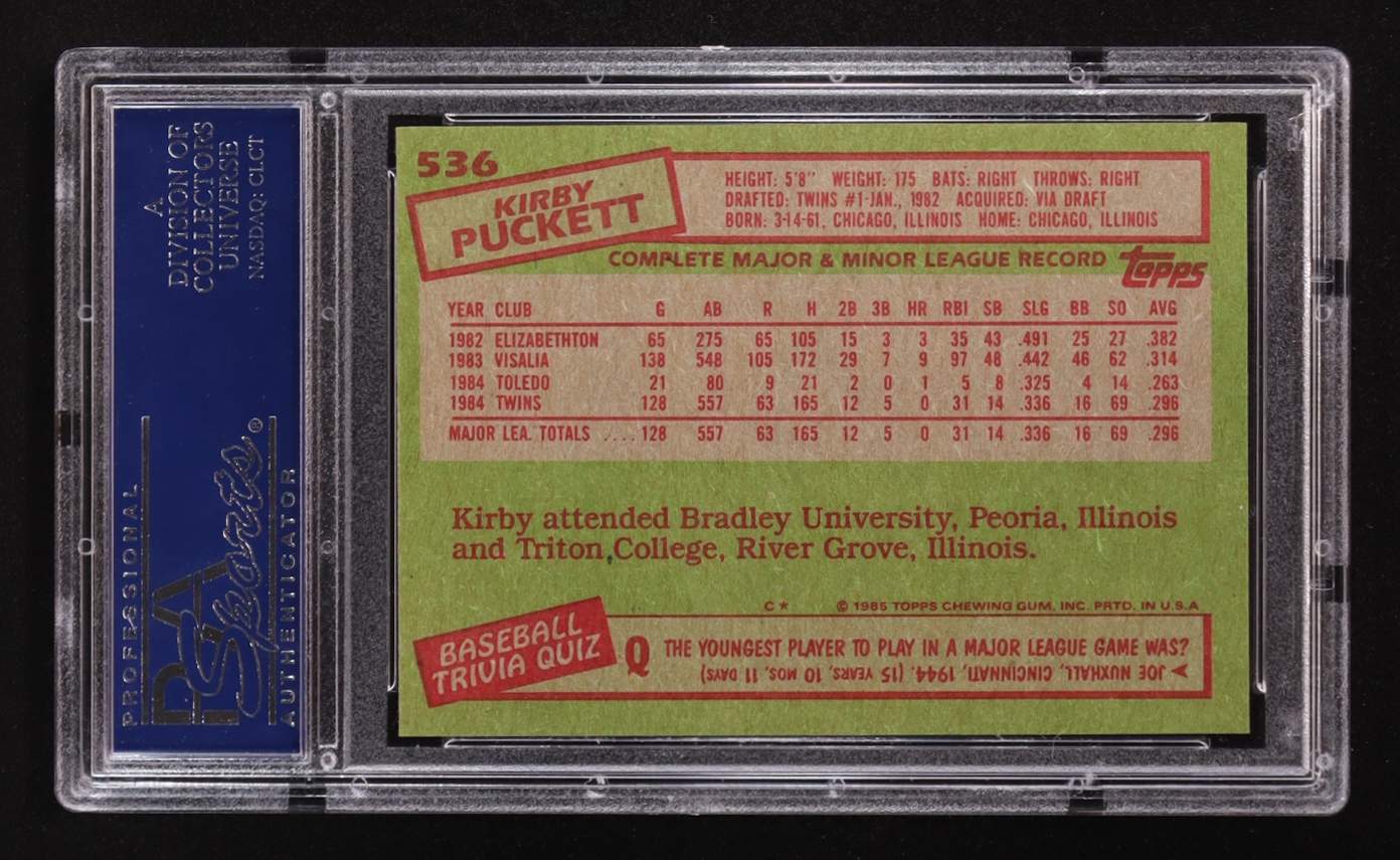 Kirby Puckett 1985 Topps #536 RC (PSA 8)