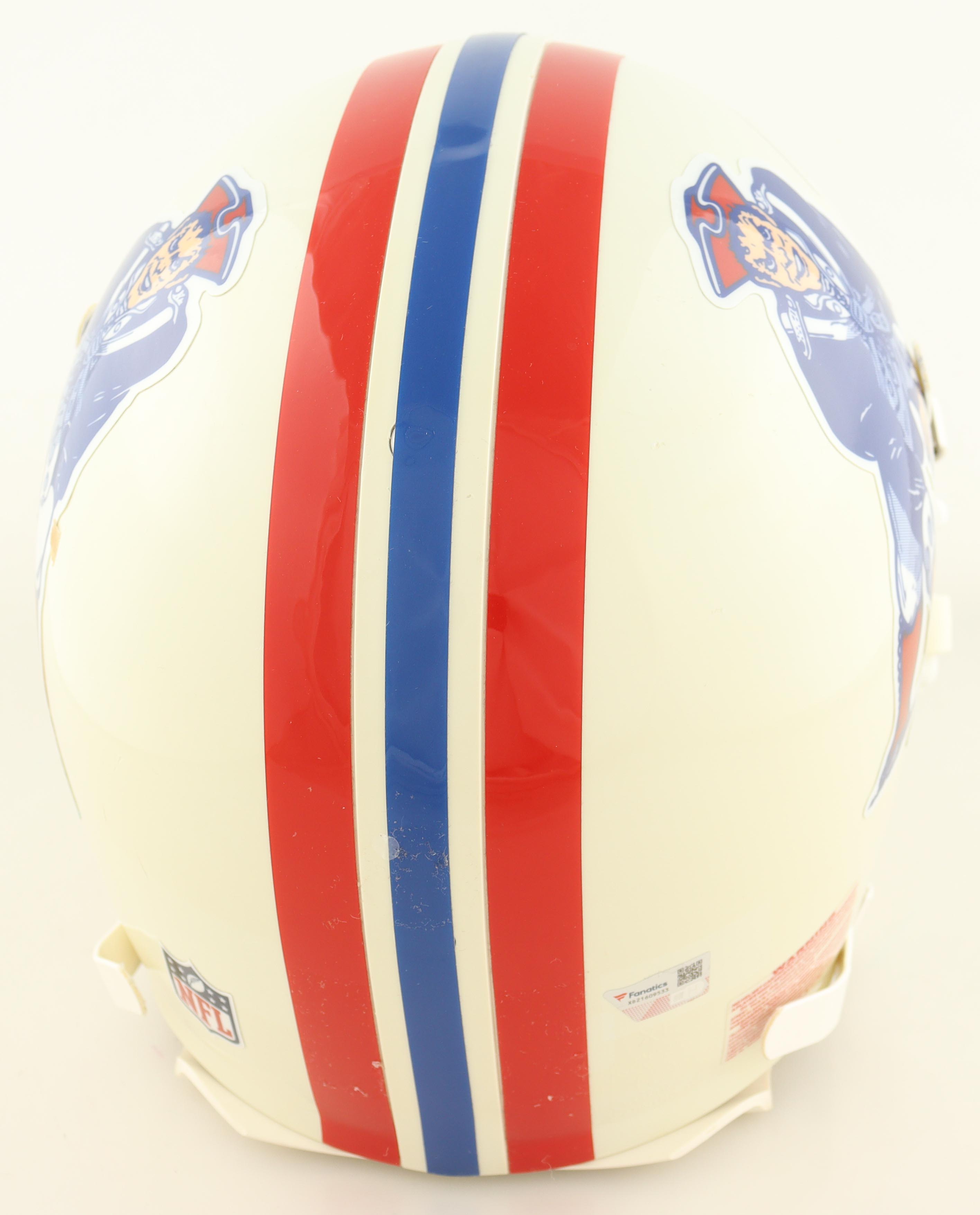 Riddell New England Patriots full-size authentic on-field throwback alternate speed helmet has been hand-signed and inscribed by The Goat, Tom Brady!