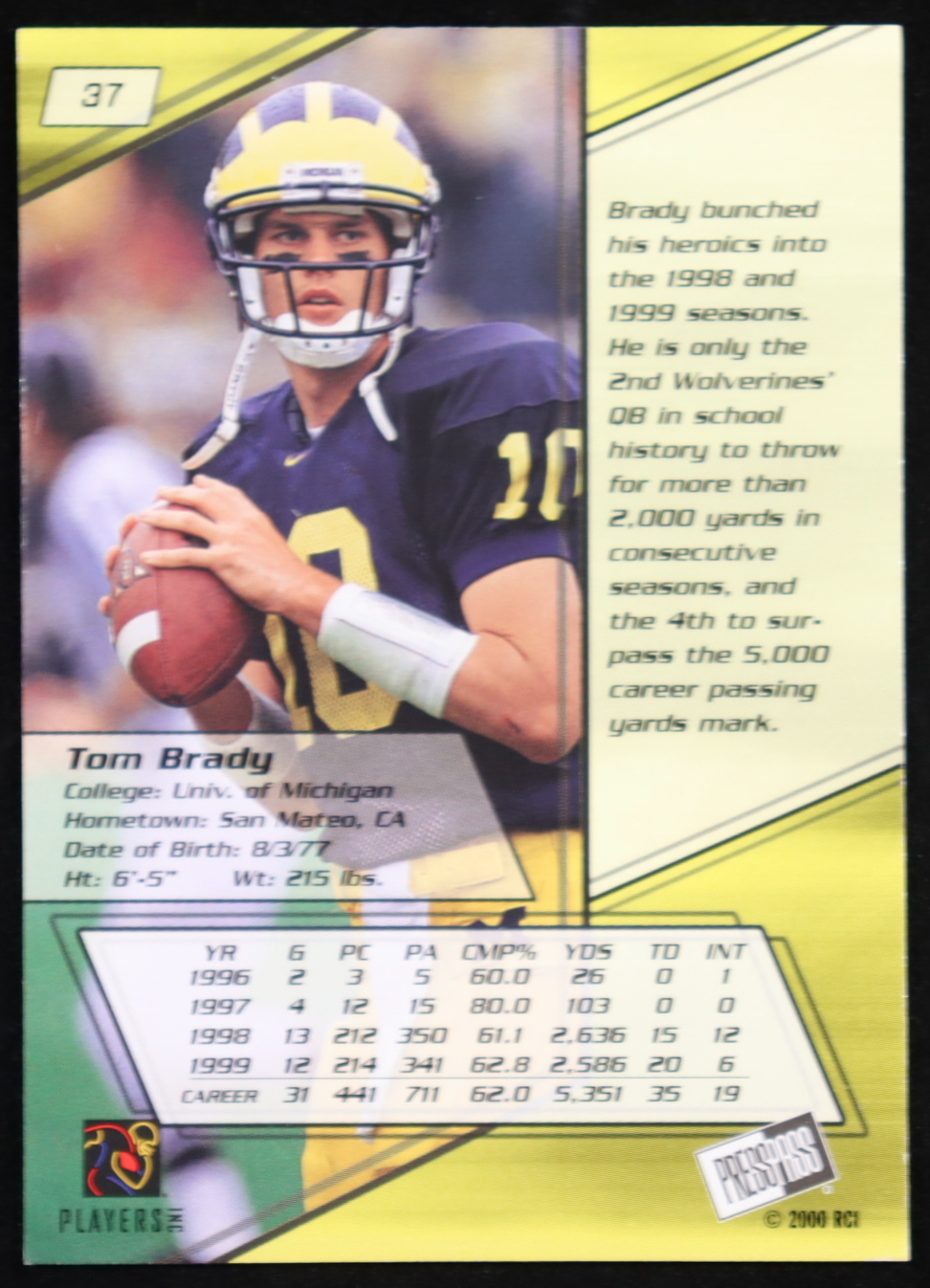 Tom Brady 2000 Press Pass #37 RC