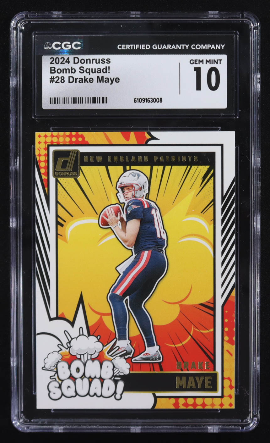 Drake Maye 2024 Panini Donruss Bomb Squad! #28 RC (CGC 10)