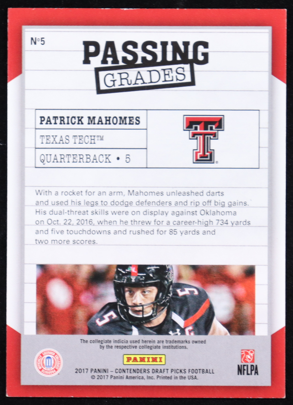 Patrick Mahomes II 2017 Panini Contenders Draft Picks Passing Grades #5 RC