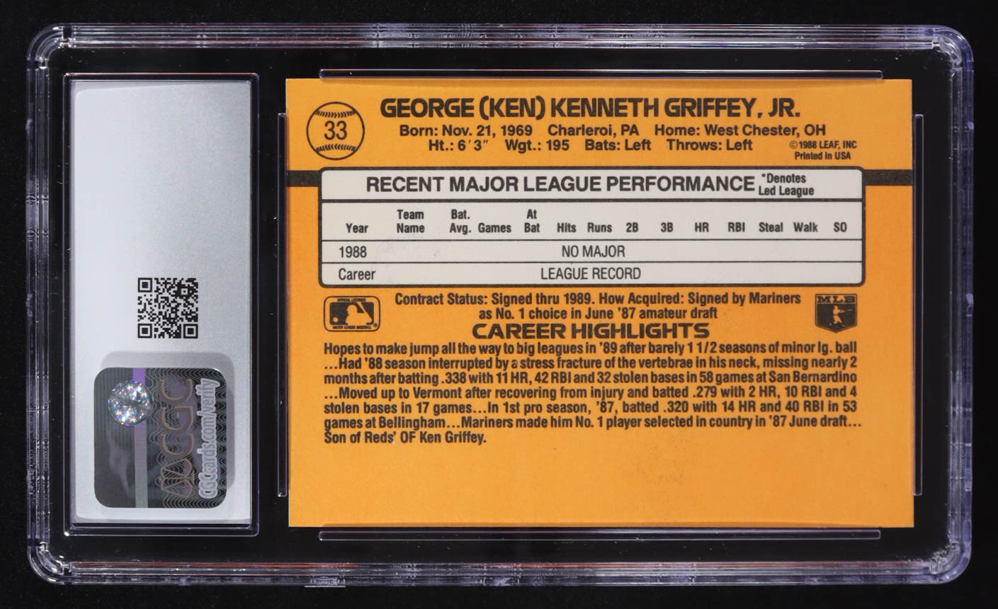 Ken Griffey Jr. 1989 Donruss Rated Rookie #33 RC (CGC 8)