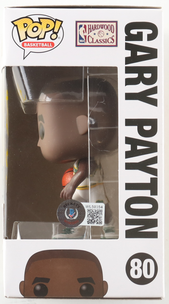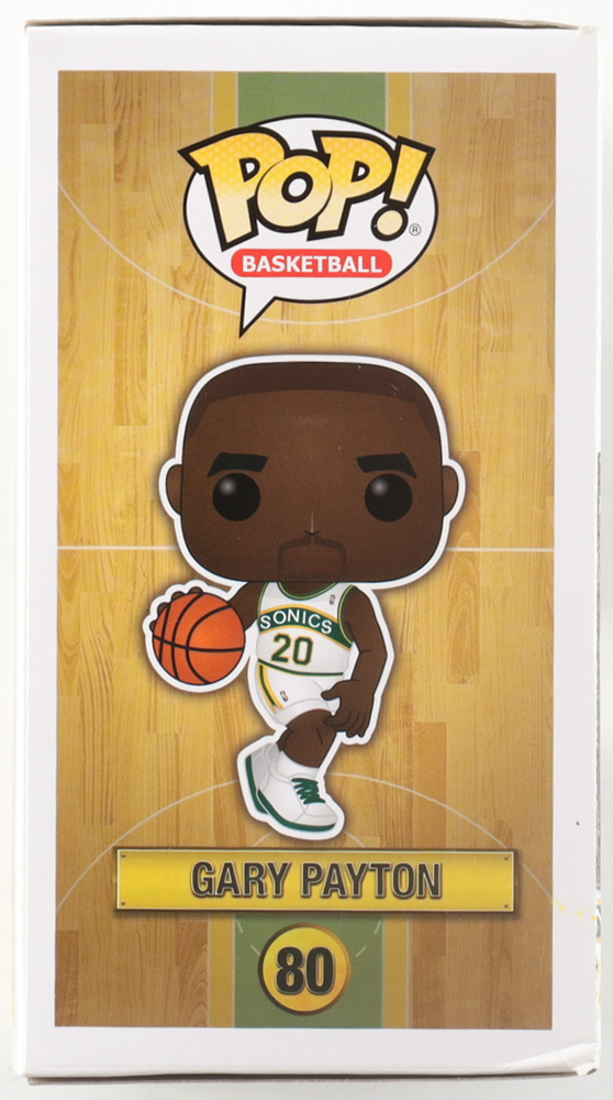 Funko Pop! vinyl figure measures approximately 4" in height and has been hand-signed and inscribed on the packaging by Gary Payton (Seattle SuperSonics).