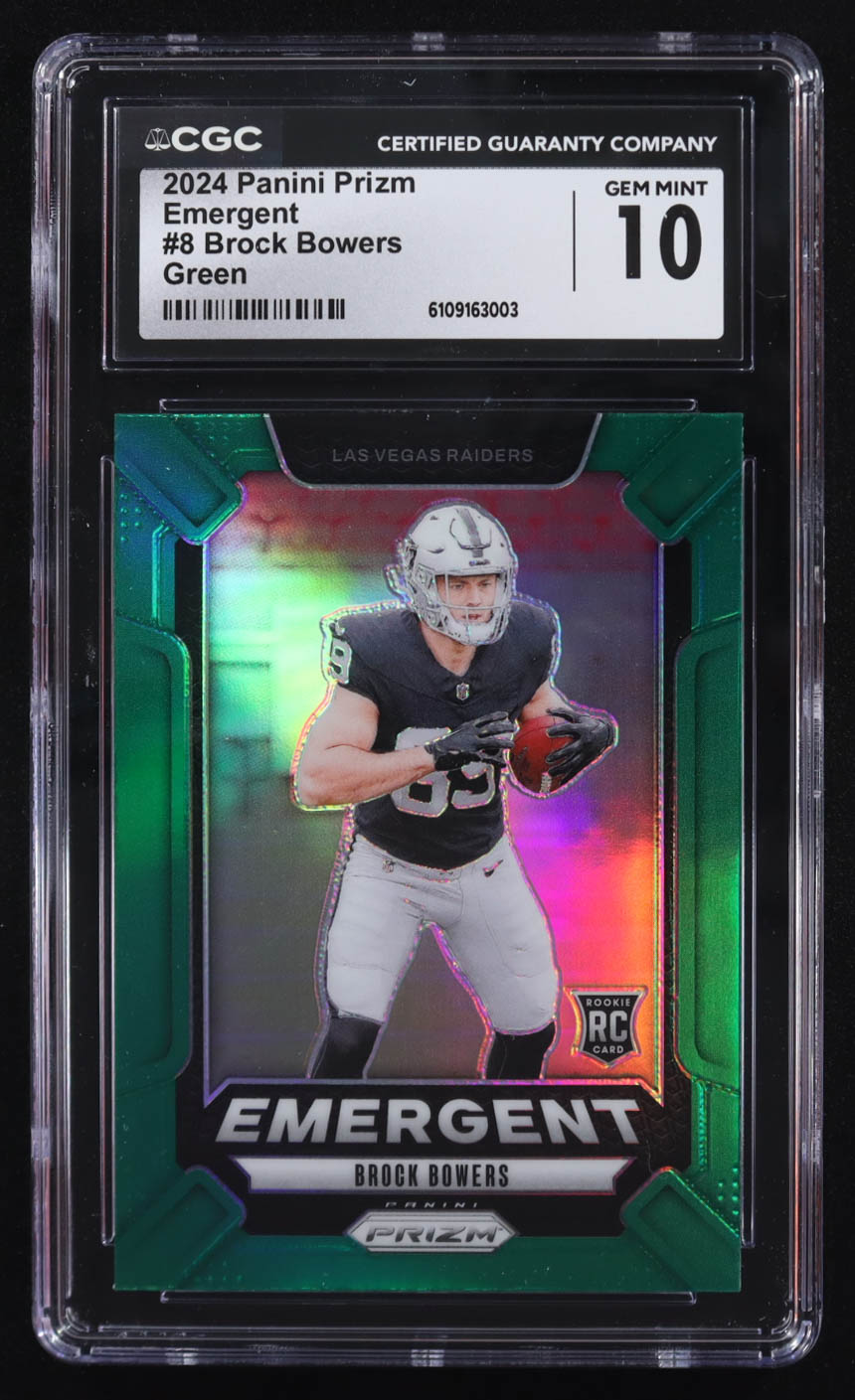 Brock Bowers 2024 Panini Prizm Emergent Green #8 RC (CGC 10)