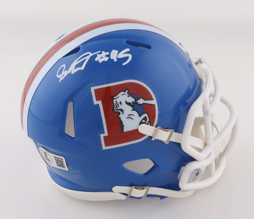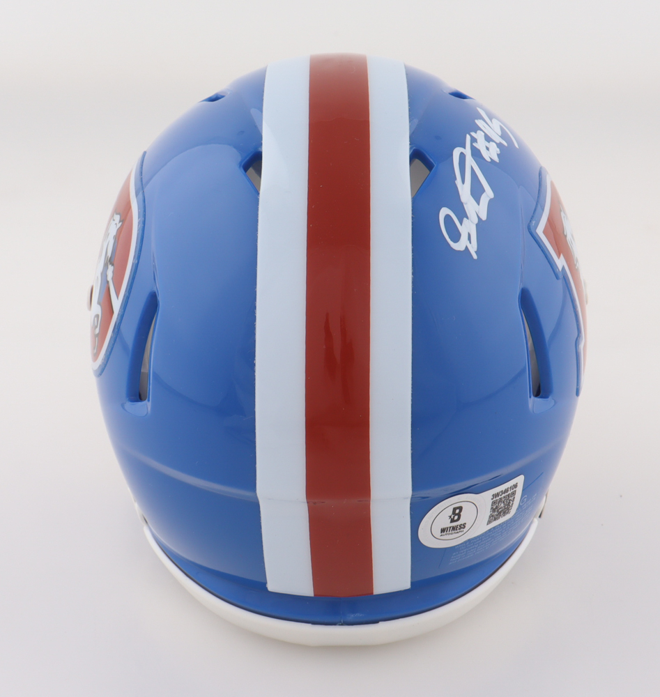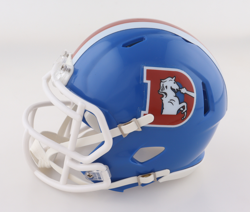 Riddell Denver Broncos Throwback Speed mini helmet has been hand-signed by Sai'vion Jones.