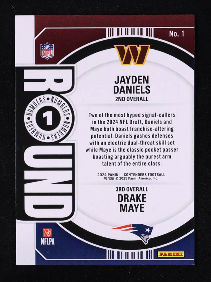 Drake Maye / Jayden Daniels 2024 Panini Contenders Round Numbers #1 RC