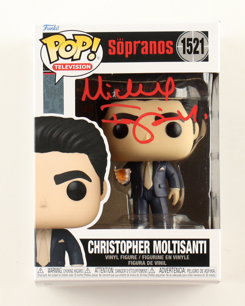 Funko Pop! vinyl figure measures approximately 4" tall. Hand-signed on the packaging by Michael Imperioli (Christopher Moltisanti).