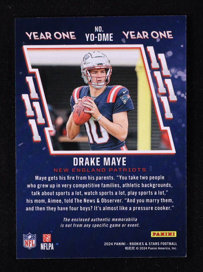 Drake Maye 2024 Rookies and Stars Year One Jerseys #12 RC
