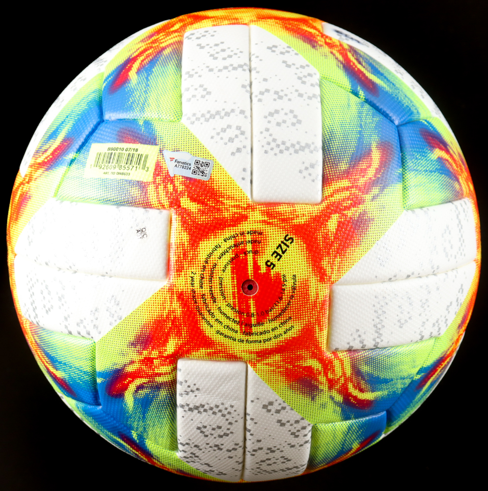 Adidas Conext19 soccer ball has been hand-signed by Julie Ertz, Alex Morgan, and Megan Rapinoe. Item is numbered limited edition 5/19.