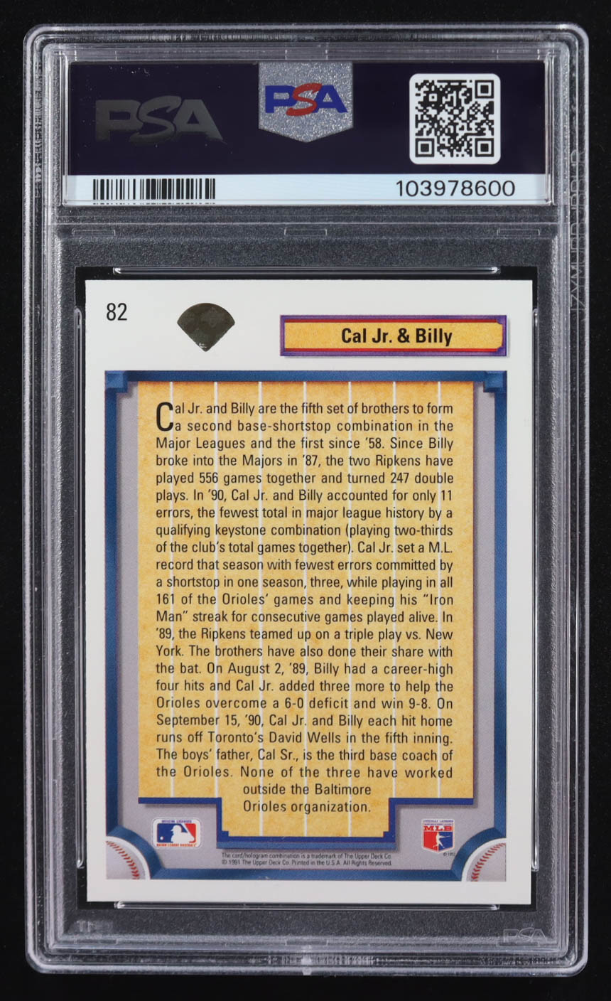 Cal Ripken Jr. / Billy Ripken 1992 Upper Deck Gold Hologram #82 / Ripken Brothers (PSA 10)