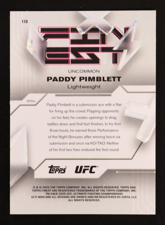 Paddy Pimblett 2025 Finest UFC Blue Refractors #110 U #108/175