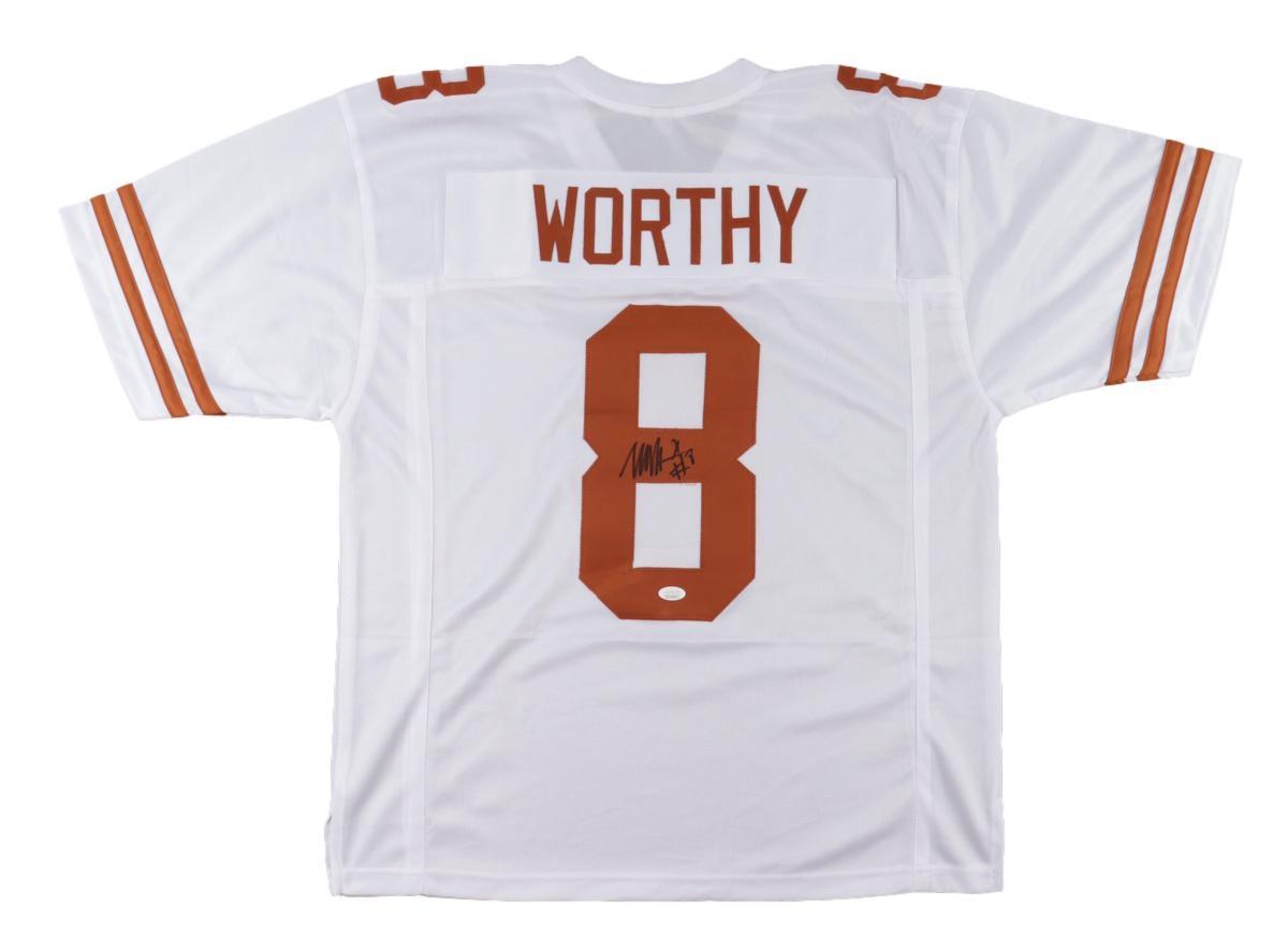 Custom jersey with everything sewn on, size XL. Hand-signed by Xavier Worthy.