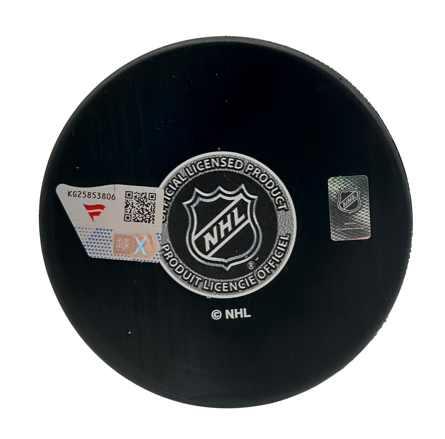 Jack Hughes Signed Devils Logo Puck (Fanatics)