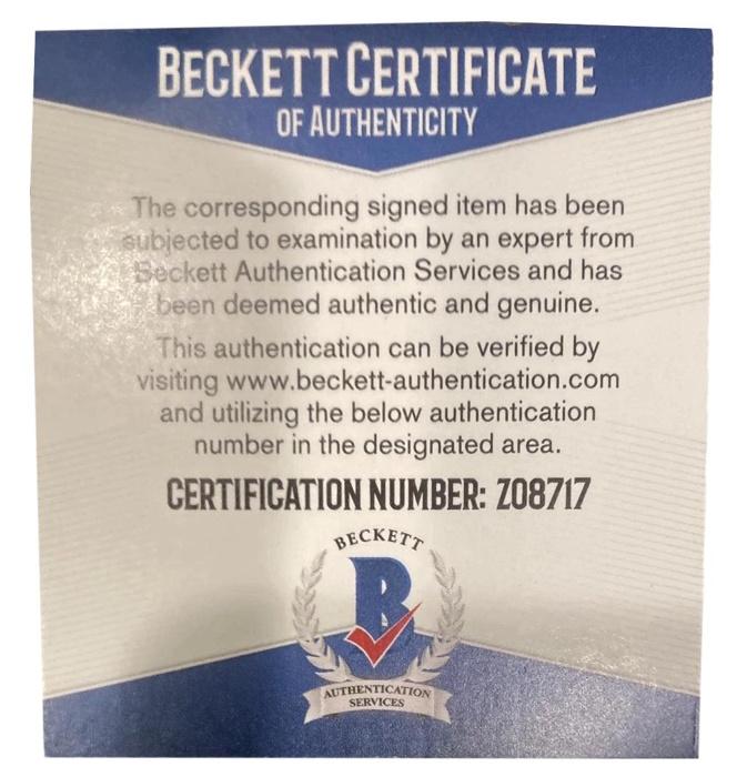The autograph includes an official Beckett Authentication Services serially-numbered hologram and matching COA for authenticity purposes.