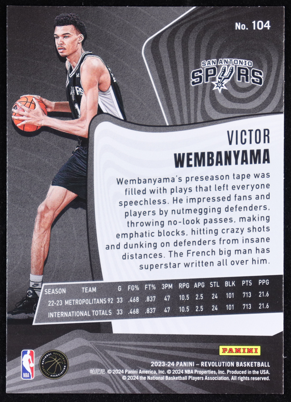 Victor Wembanyama 2023-24 Panini Revolution #104 RC