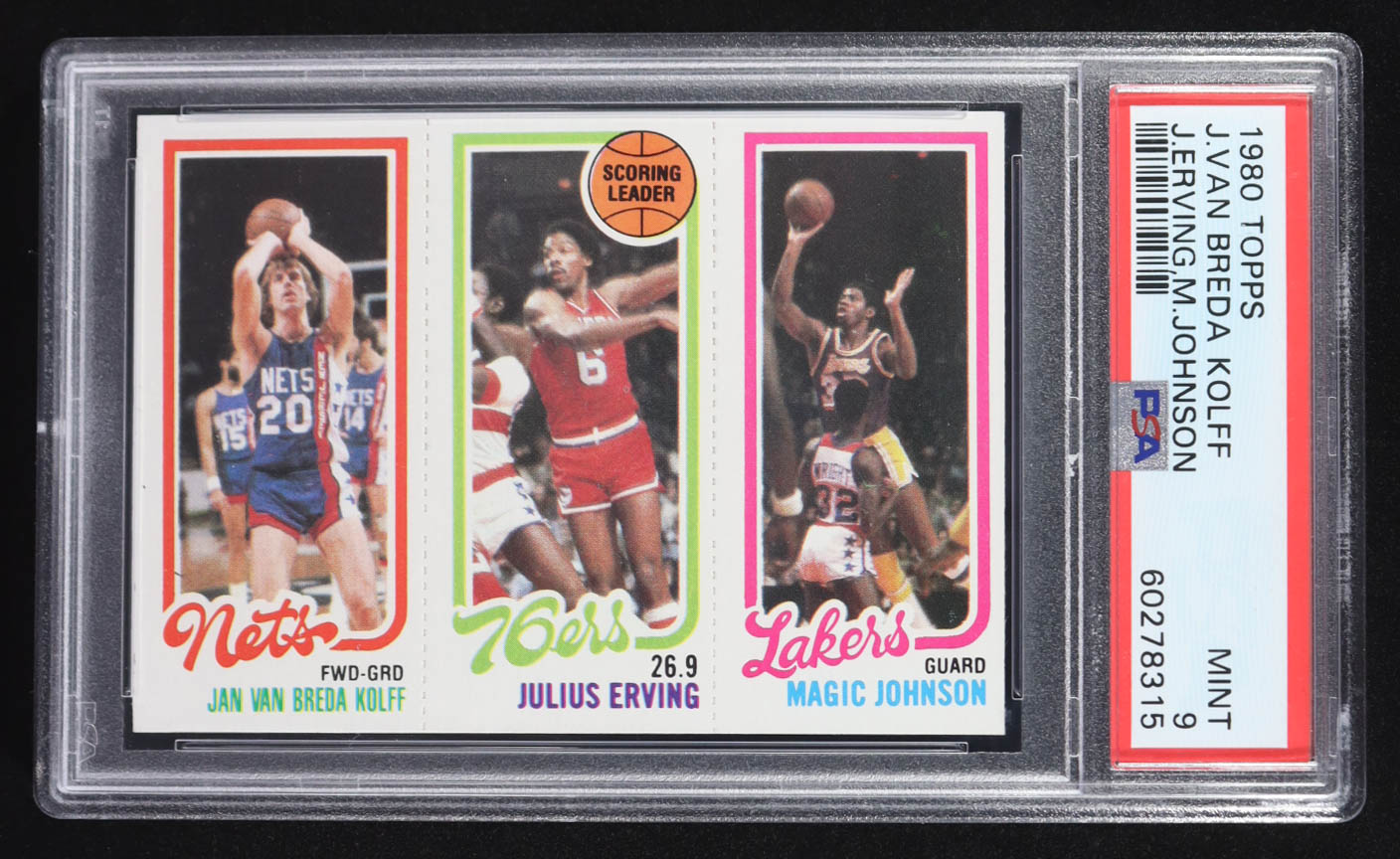 Larry Bird RC / Julius Erving / Magic Johnson RC 1980-81 Topps #6 (PSA 9)