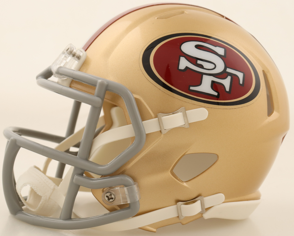 Riddell San Francisco 49ers speed mini helmet has been hand-signed by Christian McCaffrey.