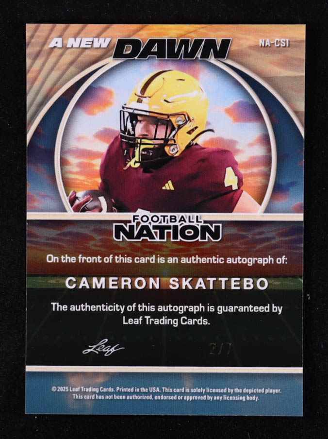 Cam Skattebo 2025 Leaf Football Nation A New Dawn Autographs Shimmer Blue #NA-CS1 #2/7 RC