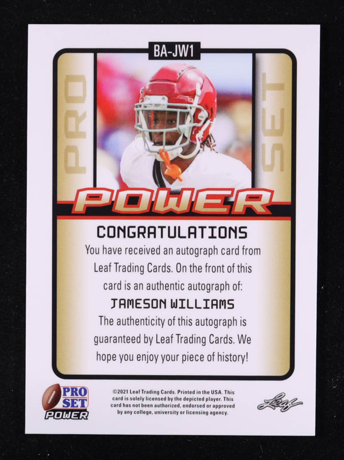 Jameson Williams 2021 Leaf Pro Set Power Autographs Spectrum Bronze Holofoil #BAJW1 RC