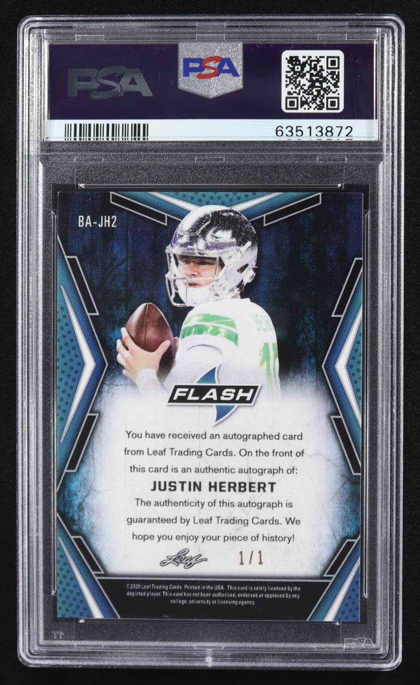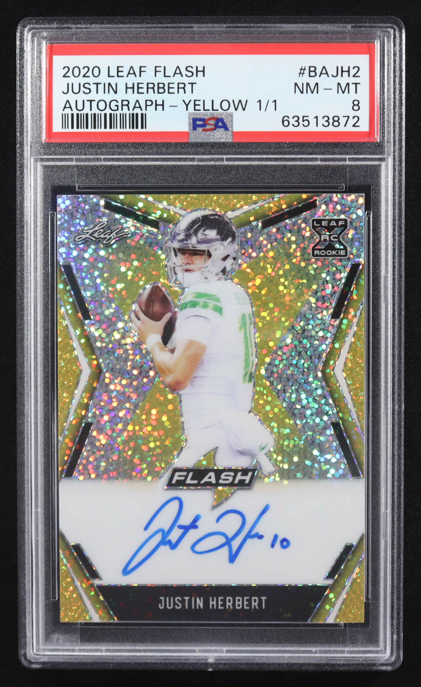 Justin Herbert 2020 Leaf Flash Autographs Yellow #BAJH2 RC #1/1 (PSA 8)