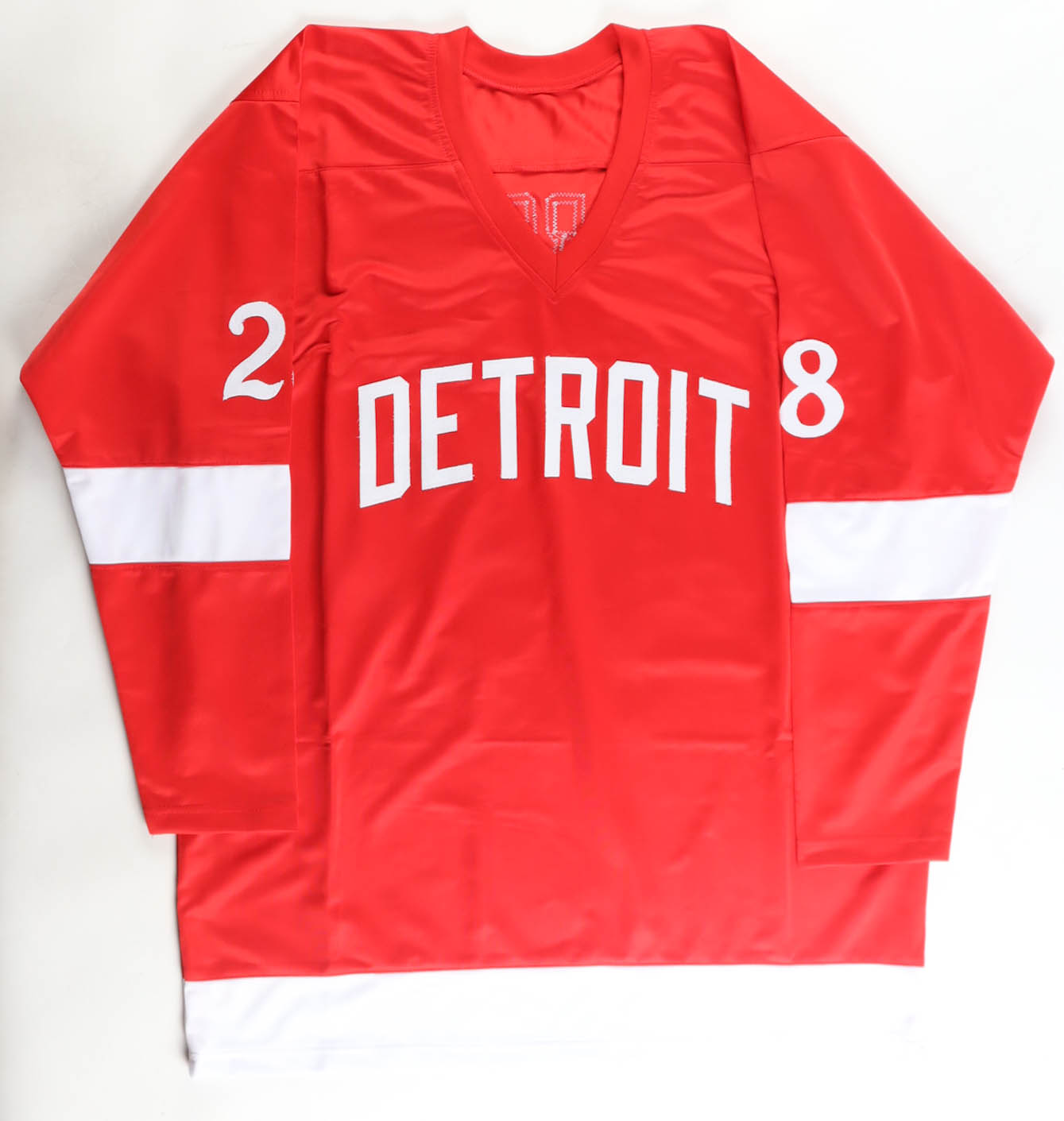 Custom jersey. Everything sewn on, size XL. Hand-signed and inscribed by Reed Larson