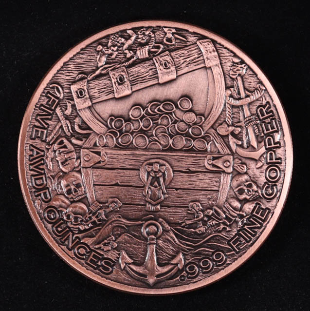 Black Beard Pirate 5 Ounce .999 Fine Copper Bullion Round