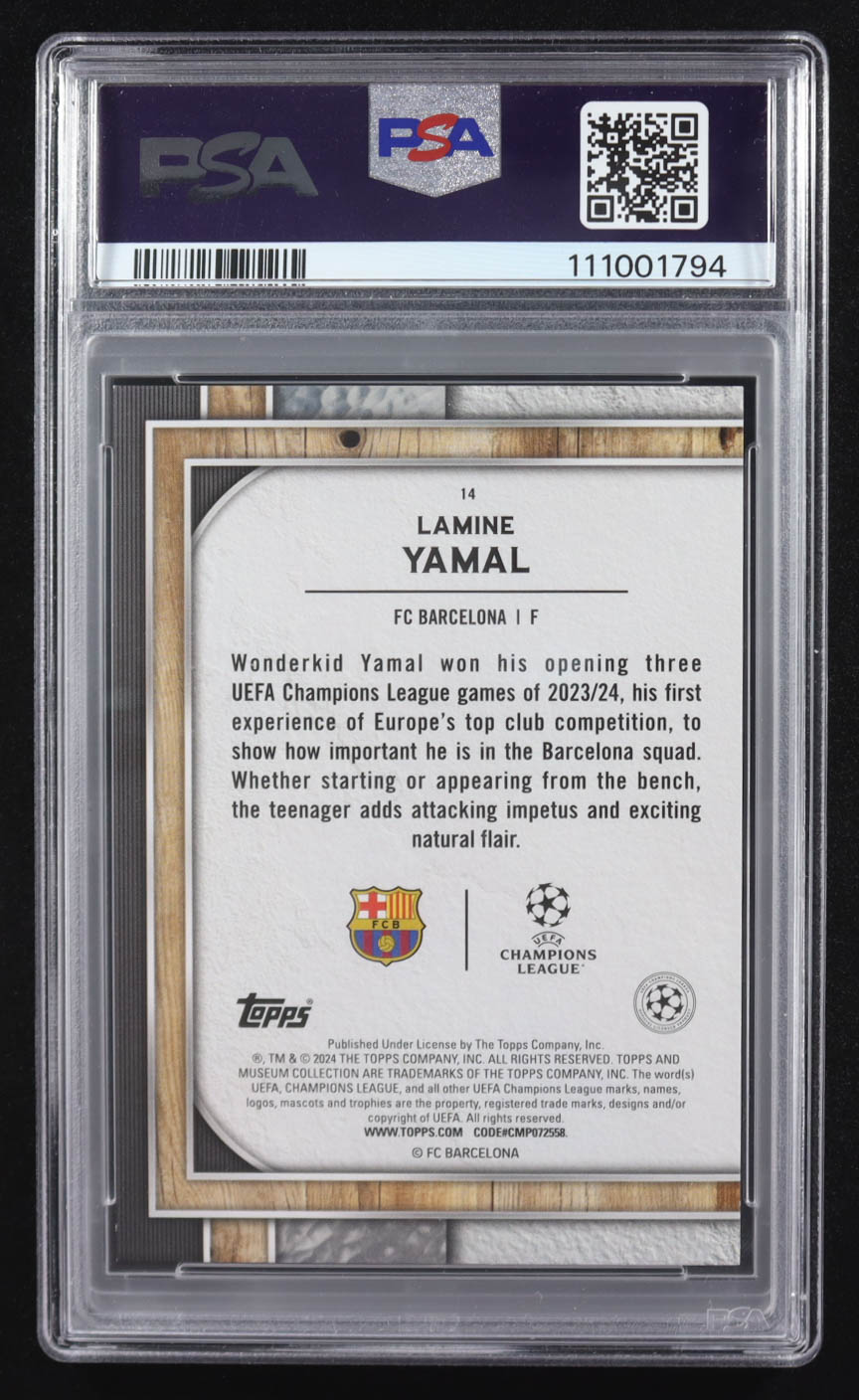 Lamine Yamal 2023-24 Topps Museum Collection UEFA Champions League Black Diamond #14 #05/10 RC (PSA 9)