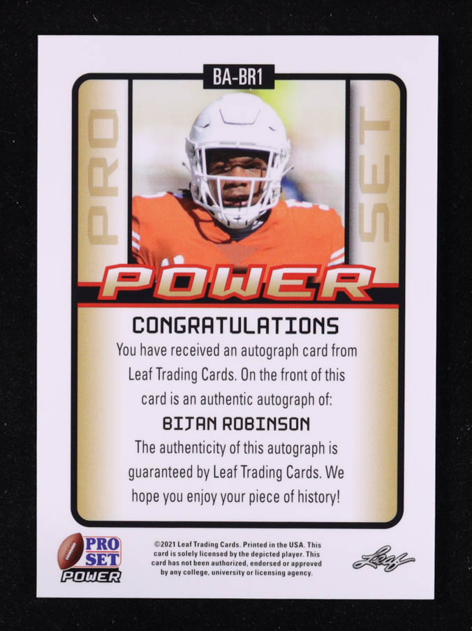 Bijan Robinson 2021 Leaf Pro Set Power Autographs Bronze Holofoil #BABR1 RC