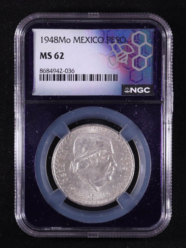 1948-Mo Mexico Peso .500 Fine Silver Coin (NGC MS62)