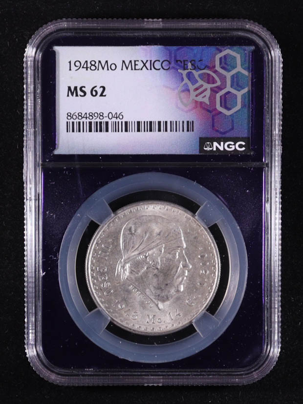 1948-Mo Mexico Peso .500 Fine Silver Coin (NGC MS62)