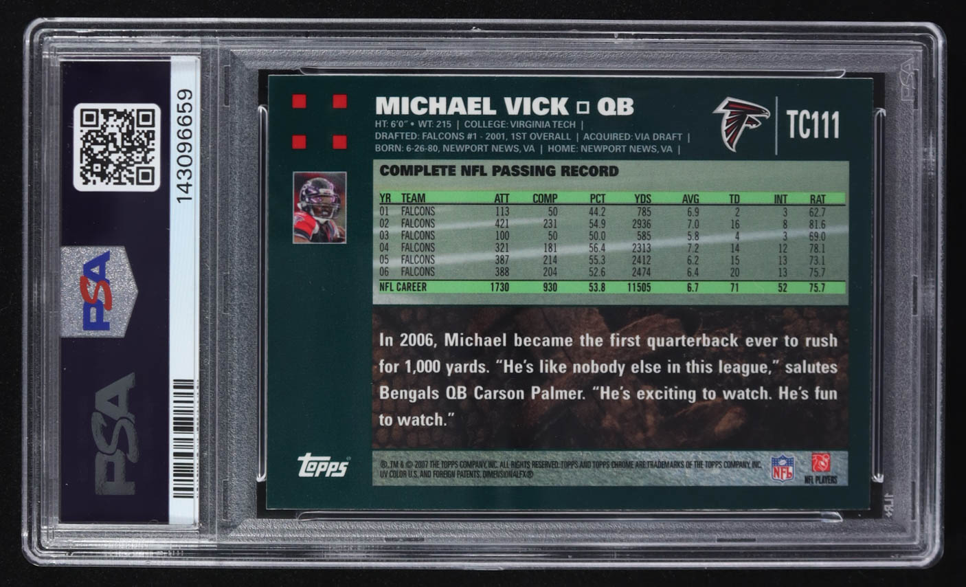 Michael Vick 2007 Topps Chrome #TC111 (PSA 8)