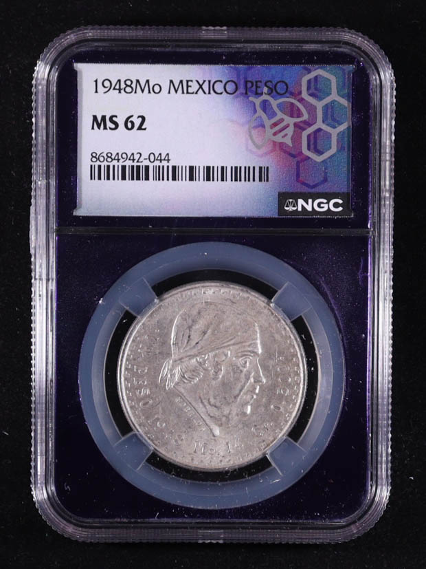 1948-Mo Mexico Peso .500 Fine Silver Coin (NGC MS62)