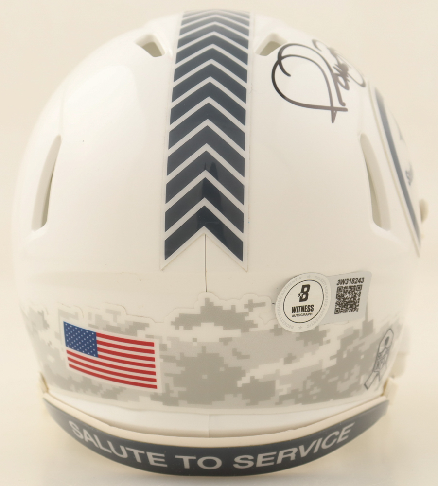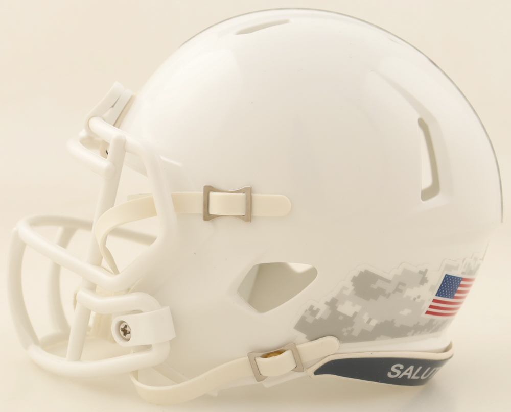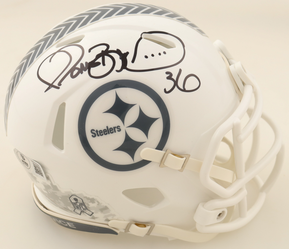 Riddell Pittsburgh Steelers Salute to Service Alternate Speed mini helmet has been hand-signed by Jerome Bettis (HOF).