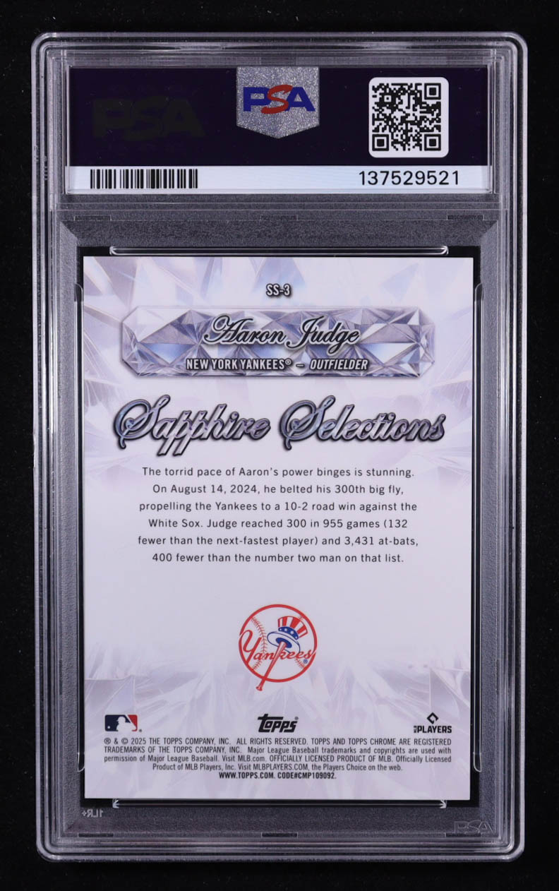 Aaron Judge 2025 Topps Chrome Sapphire Selections Black #SS-3 #07/10 (PSA 10)