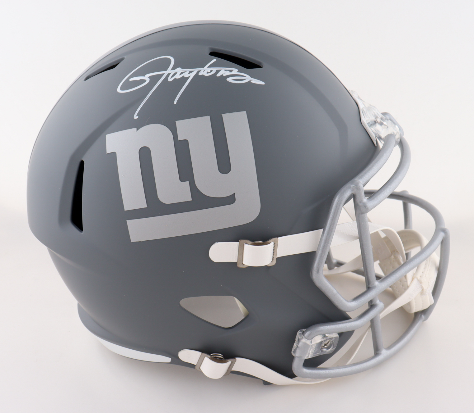 Riddell New York Giants full-size Slate Alternate replica Speed helmet. Hand-signed by Lawrence Taylor (HOF).