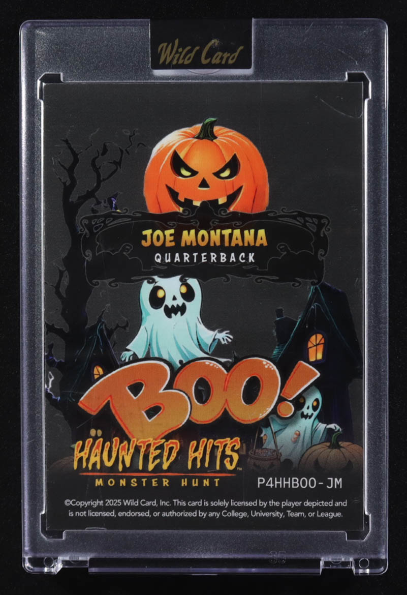 Joe Montana 2025 Wild Card Haunted Hits BOO! Purple Rainbow Foil #P4HHBOO-JM #3/4