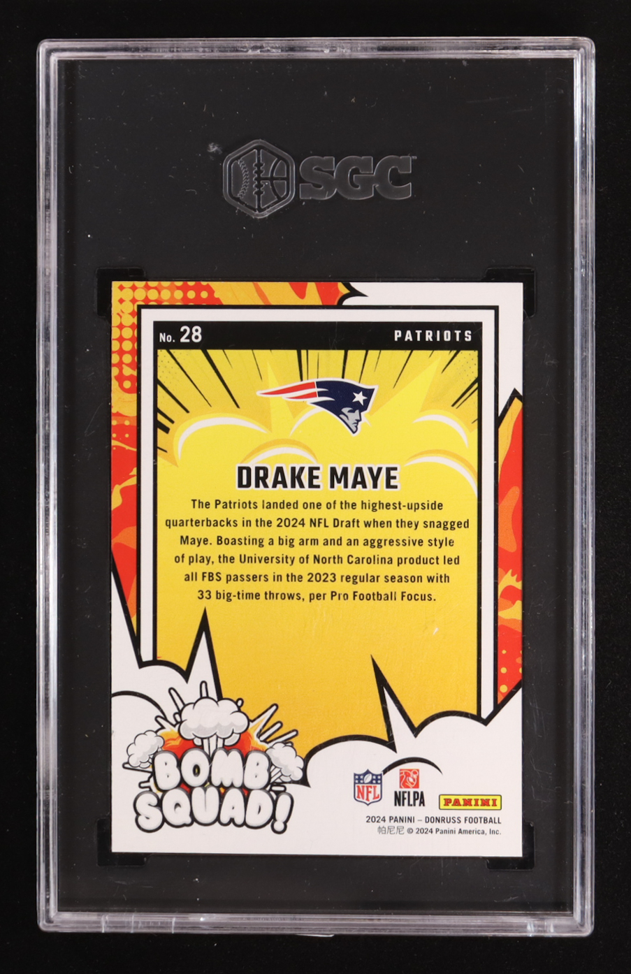 Drake Maye 2024 Donruss Bomb Squad #28 RC (SGC 10)
