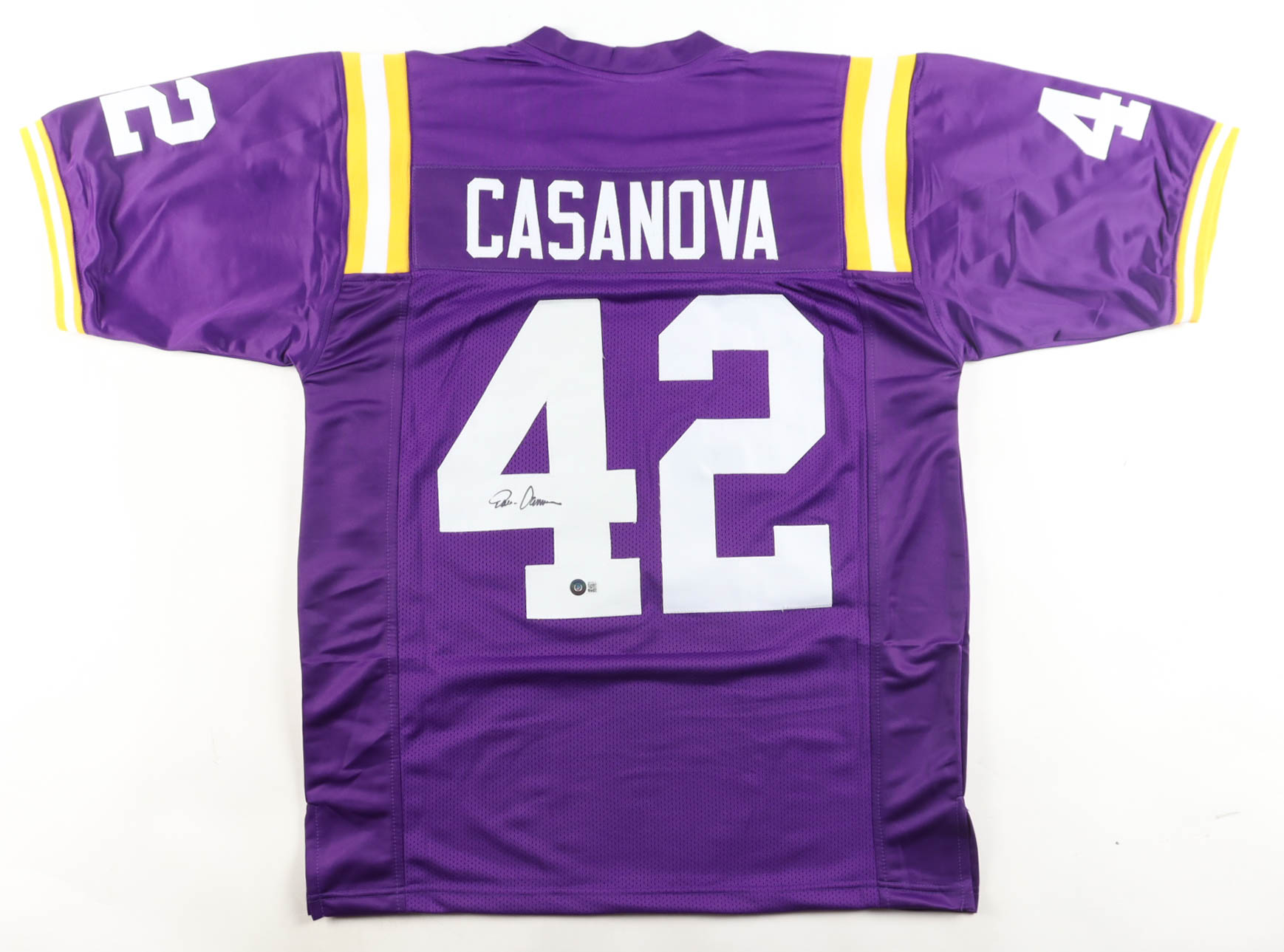 Custom jersey with everything sewn on, size XL. Hand-signed by Tommy Casanova