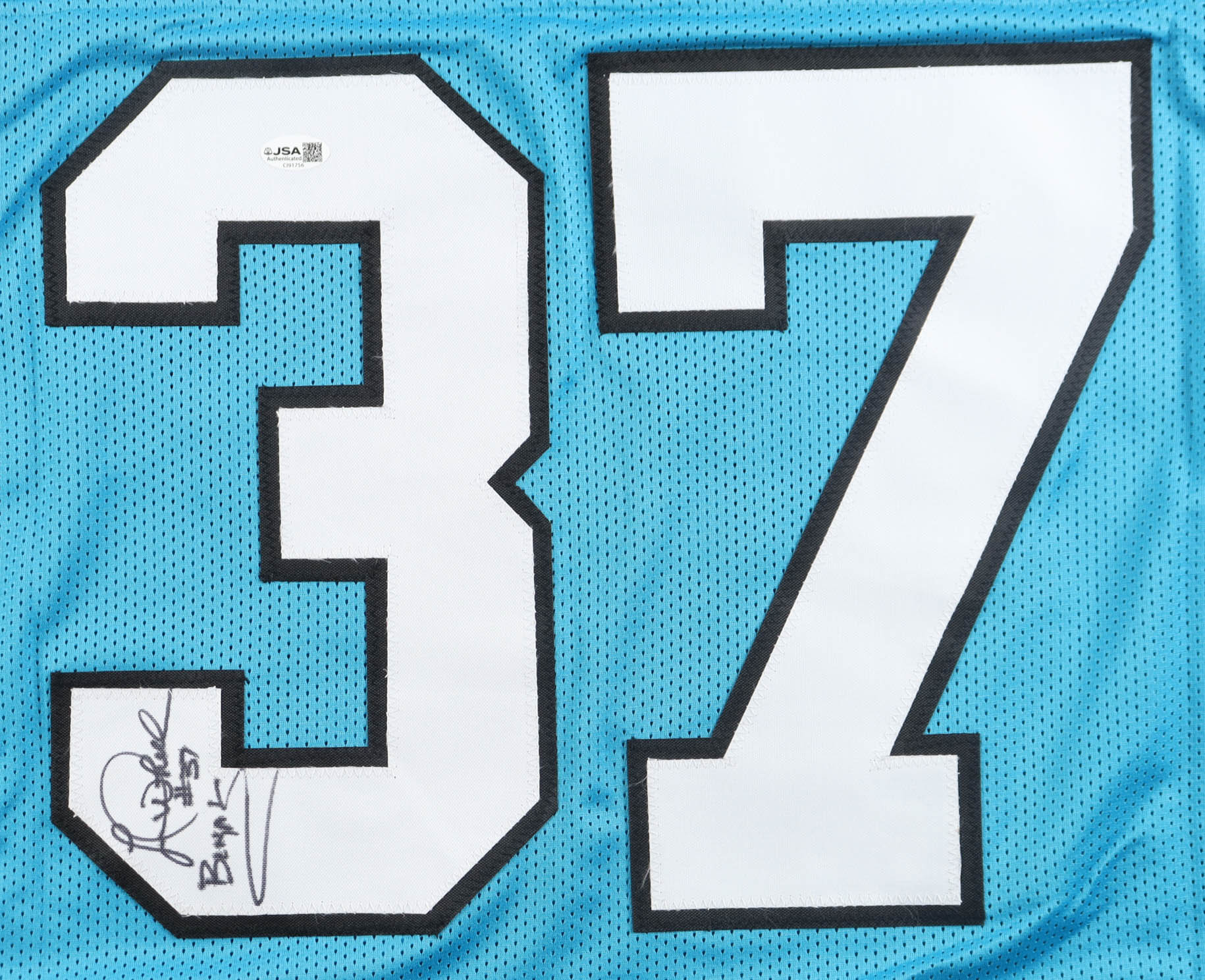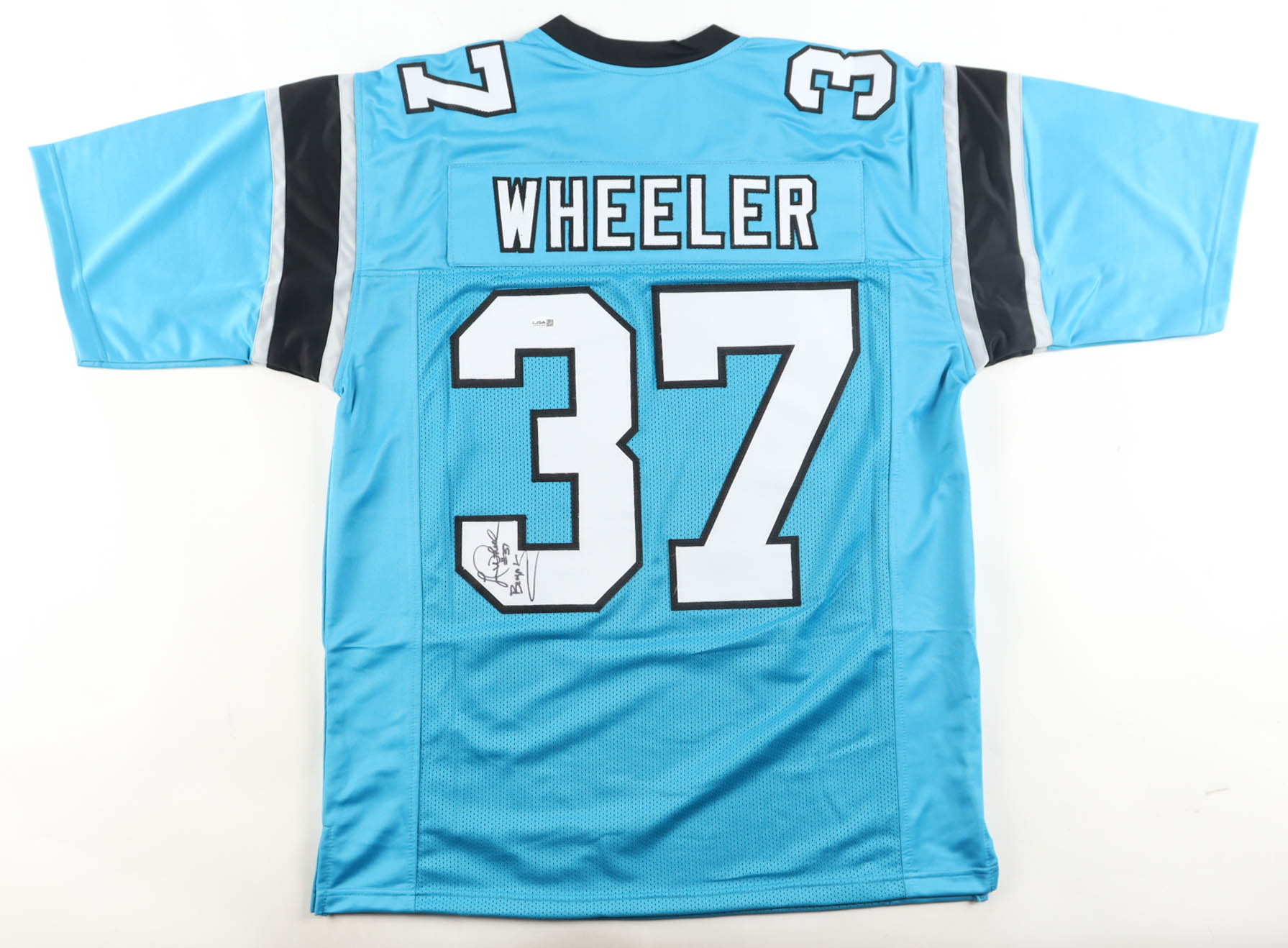 Custom jersey with everything sewn on, size XL. Hand-signed and inscribed by Leonard Wheeler. Please note, the signature and inscription have bled.