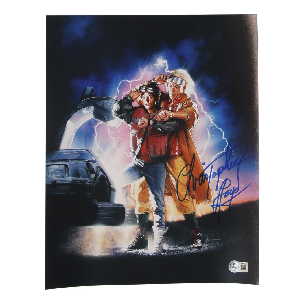 Photo measures 11" x 14" in size and has been hand-signed by Christopher Lloyd (Dr. Emmett "Doc" Brown).