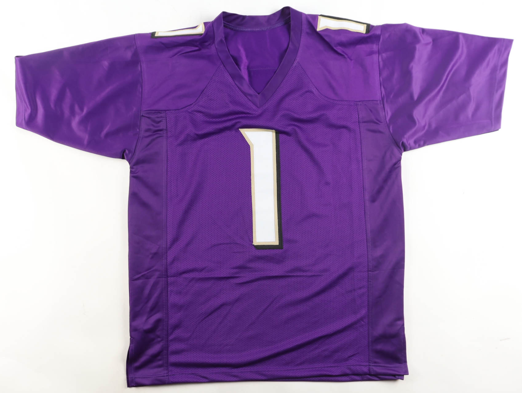Custom jersey with everything sewn on, size XL. Hand-signed by John Harbaugh.