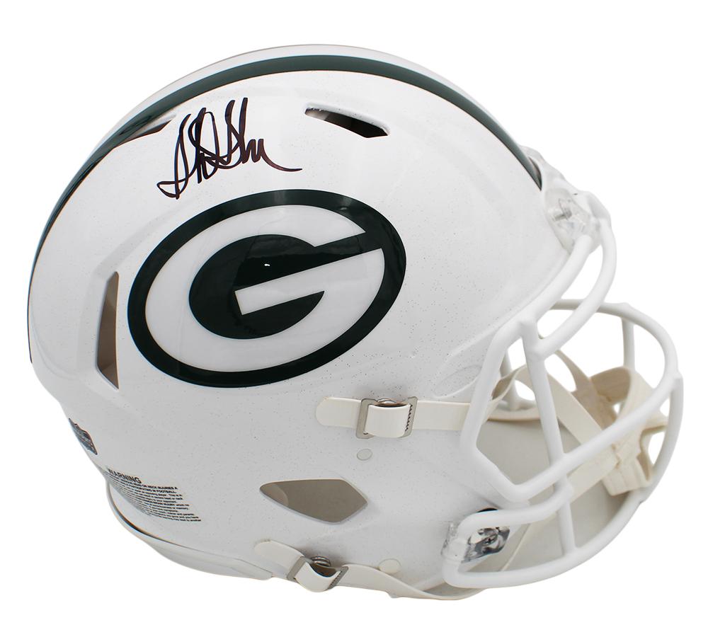 Riddell Green Bay Packers full-size authentic on-field alternate speed helmet has been hand-signed by Sterling Sharpe (HOF).
