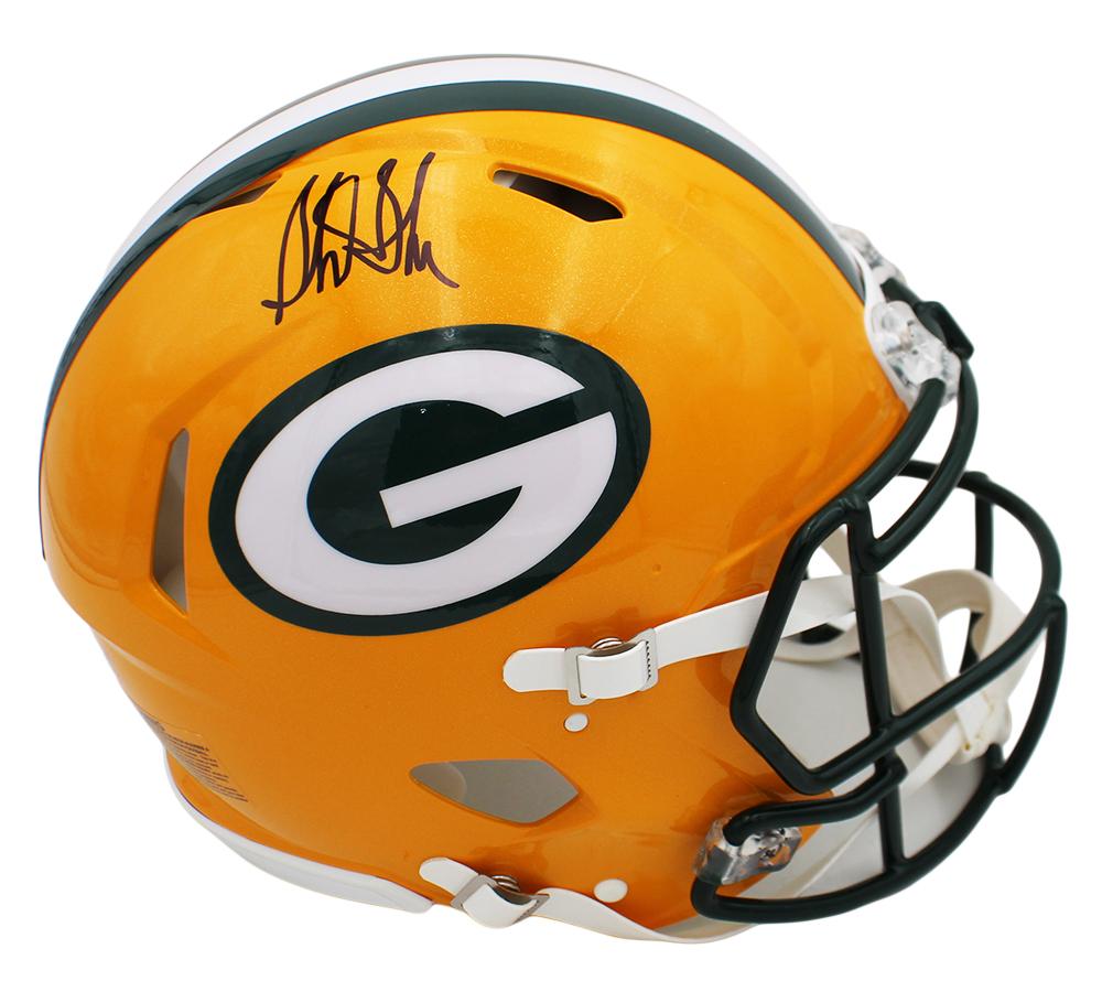 Riddell Green Bay Packers full-size authentic on-field speed helmet has been hand-signed by Sterling Sharpe (HOF).