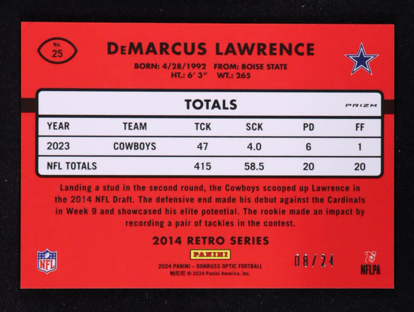DeMarcus Lawrence 2024 Donruss Optic '14 Retro Series Dragon #25 #08/24